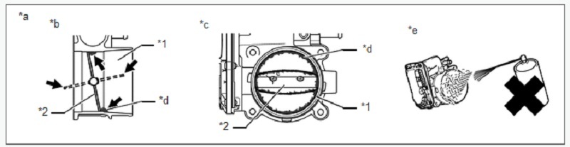 ·Không được đổ dung môi không đóng cặn trực tiếp vào cổ họng gió hoặc rửa cổ họng gío. Dung dịch có thể thấm vào bên trong môtơ từ các trục và gây trục trặc như gỉ hoặc vấn đề dịch chuyển của bướm ga.