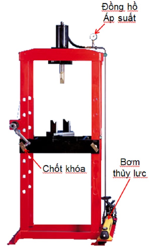 Máy ép thủy lực là thiết bị sử dụng trong sửa chữa ô tô được dùng để tháo ra hoặc lắp vào các chi tiết dạng trụ ra khỏi chi tiết khác. Các chi tiết hay sử dụng máy ép thủy lực đó là cao su càng A, ép vòng bi ...