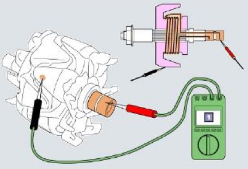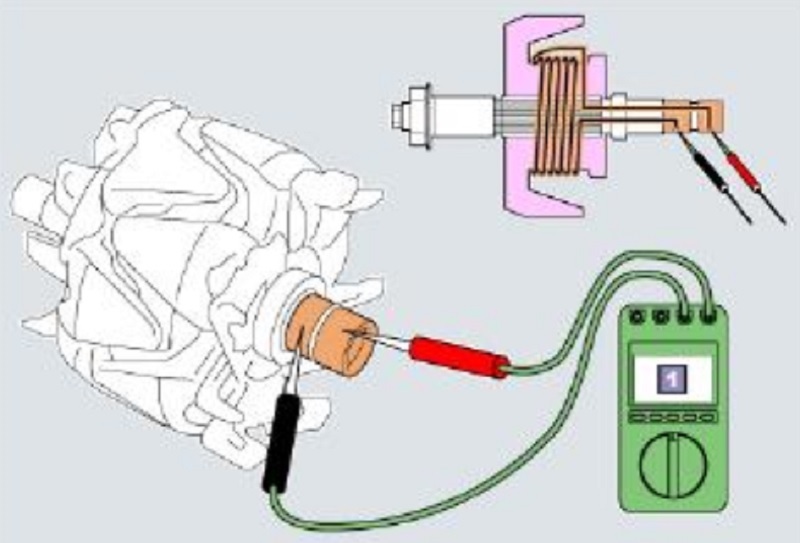 Rotor là một nam châm điện quay và có một cuộn dây bên trong. Cả hai đầu của cuộn dây được nối với cổ góp. Kiểm tra thông mạch giữa cổ góp có thể sử dụng để phát hiện hở mạch bên trong cuộn dây. Nếu nhận thấy có vấn đề trong khi kiểm tra cách điện hay thông mạch, hãy thay rotor.