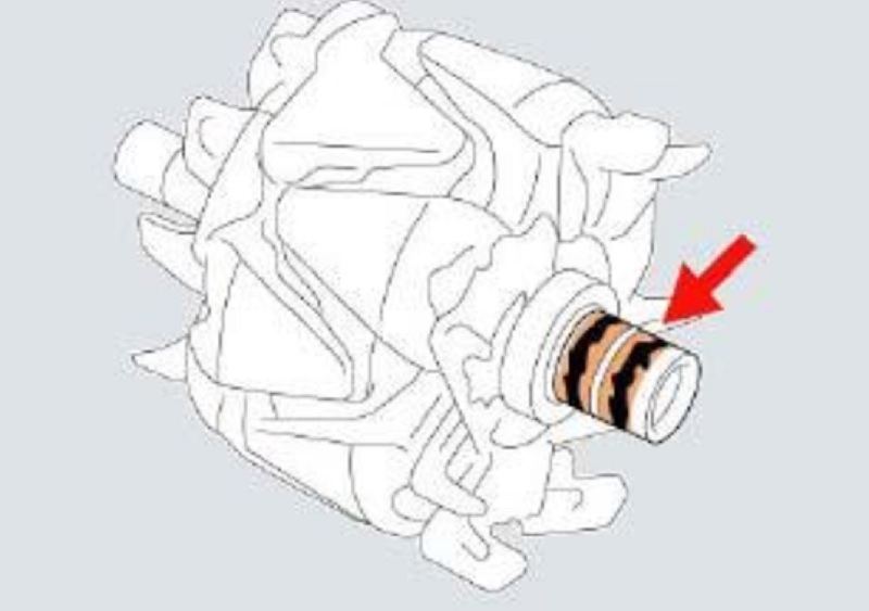 Nếu kết quả đo vượt quá giới hạn mòn tiêu chuẩn ^ thay rotor. Cổ góp tiếp xúc với chổi than trong khi quay và tạo ra dòng điện. Vì vậy, khi đường kính ngoài của cổ góp thấp hơn so với giá trị tiêu chuẩn, tiếp xúc giữa cổ góp và chổi than sẽ không đủ, nó có thể làm ảnh hưởng đến việc tuần hoàn dòng điện. Kết quả là, nó có thể làm giảm khả năng phát điện của máy phát.