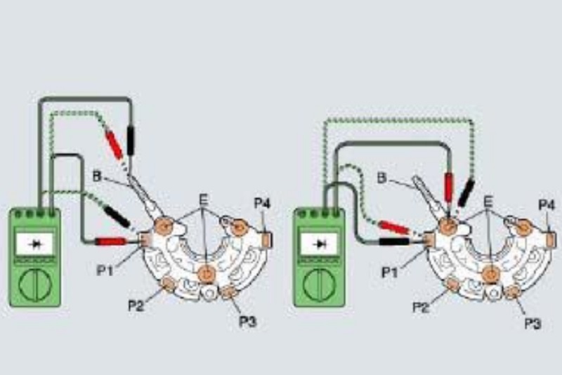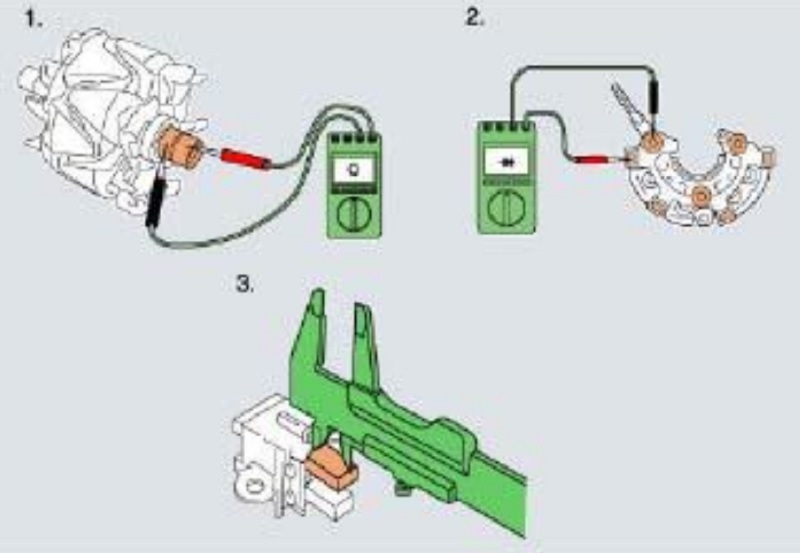 ■ Kiểm tra bộ chỉnh lưu máy phát (ký hiệu số 2 trên hình).