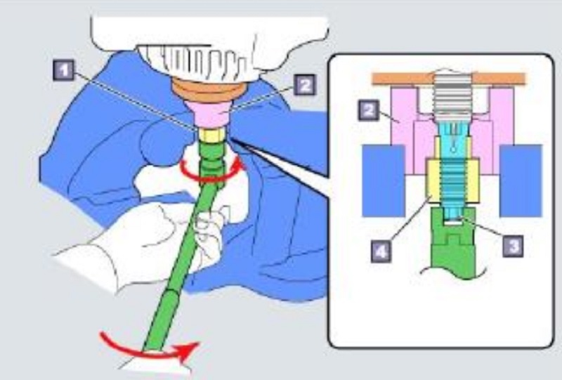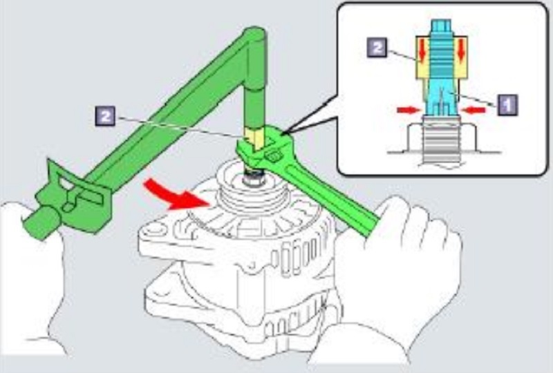 - Bước 3: Quay SST1-A theo chiều kim đồng hồ để nới lỏng đai ốc hãm puly.