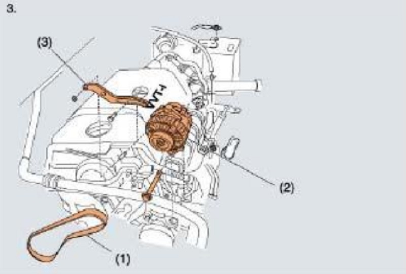 1. Đai dẫn động; 2. Máy phát; 3. Thanh giữ
