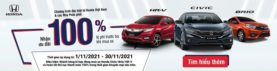Đơn cử nhất phải nhắc đến hãng xe Honda đã áp ngay chướng trình nhận ưu đãi 100% lệ phí trước bạ khi mua xe. Thời áp dụng từ 01/11/2021 đến 30/11/2021. Điều kiện: Khách hàng kí hợp đồng mua xe Honda Civic, Honda Brio, Honda HR-V và hoàn tất thủ tục thanh toán 100% trong thời gian khuyến mại nêu trên.