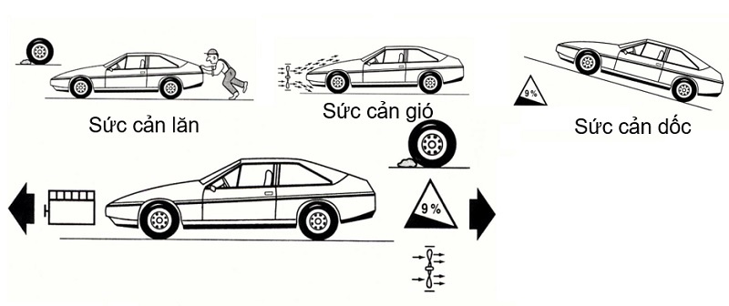 Để cho xe có thể chuyển động, nó phải thắng được các sức cản trong khi chuyển động. Có 3 sức cản chính sau đây: