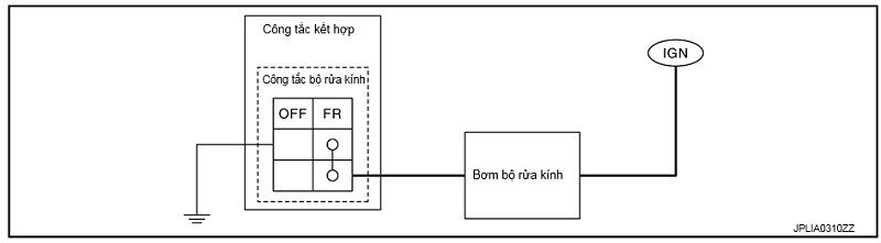 Bơm nước rửa kính được tiếp mát thông qua công tắc kết hợp khi công tắc bộ rửa kính ở ON