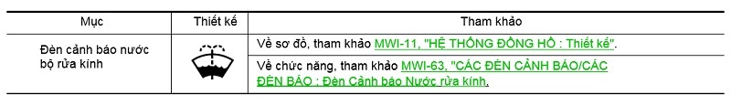 Công tắc kết hợp: Truyền trạng thái của công tắc kết hợp (cần gạt nước và bộ rửa kính) tới đồng hồ bảng táp-lô (BCM). Công tắc bộ rửa kính: Tham khảo WW-66, "Công tắc Bộ rửa kính". |