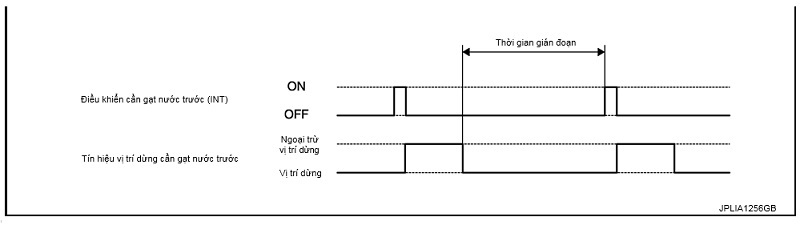 BCM truyền lại tín hiệu điều khiển cần gạt nước trước (INT) sau khoảng trì hoãn của vận hành gián đoạn.