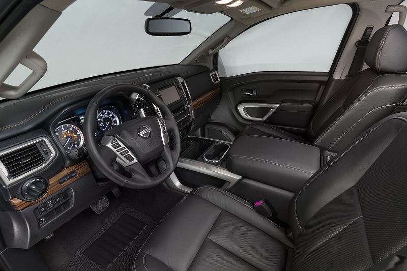Nội thất của Nissan Titan 2016 là một thiết kế mới nhưng có nhiều điểm tương đồng với Ford F-Series và những chiếc xe tải của General Motors. Lớn, lực lưỡng và bằng phẳng là những yếu tố thiết kế quan trọng. Đáng chú ý với các fan Titan sẽ là cần chuyển số được di chuyển từ táp-lô sang cột chuyển số với thiết kế lớn và gắn thêm các nút để tài xế tăng giảm số bằng tay. Cuối cùng là một nút Tow-Haul để chuyển đổi qua lại giữa chế độ kéo và chở nặng.