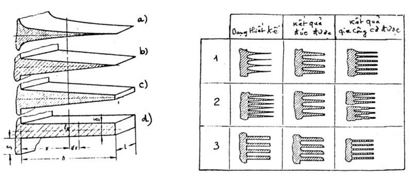 a.Dạng bề mặt parabol lõm; b.Dạng tam giác; c.Dạng hình thang; d. Dạng hình
