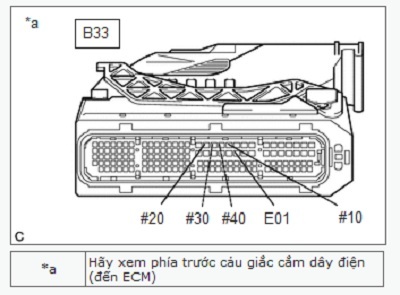 | B33-19 (#40) - B33-51 (E01) | Khoá điện ở vị trí ON | Từ 11 đến 14 V |