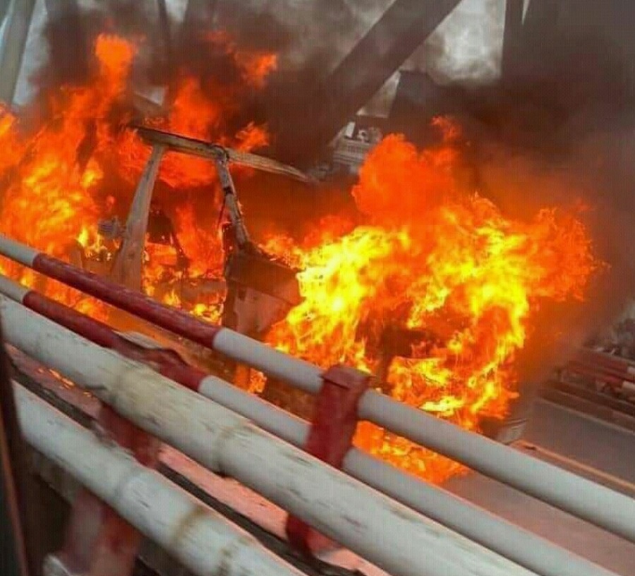 Sau đó là hình ảnh là chiếc xe bị bốc cháy dữ dội