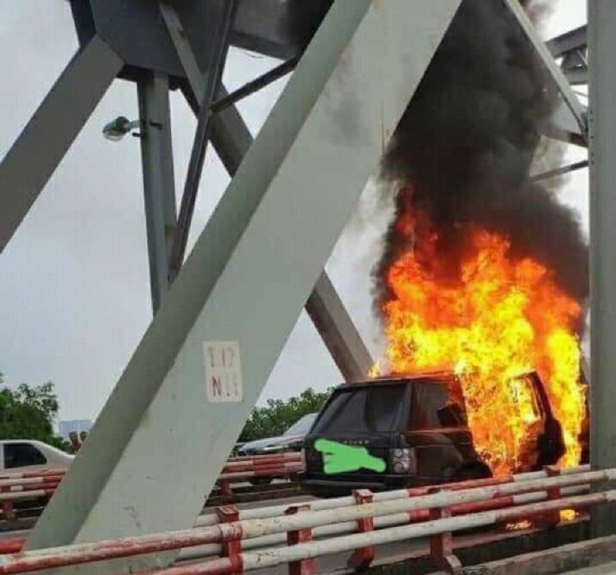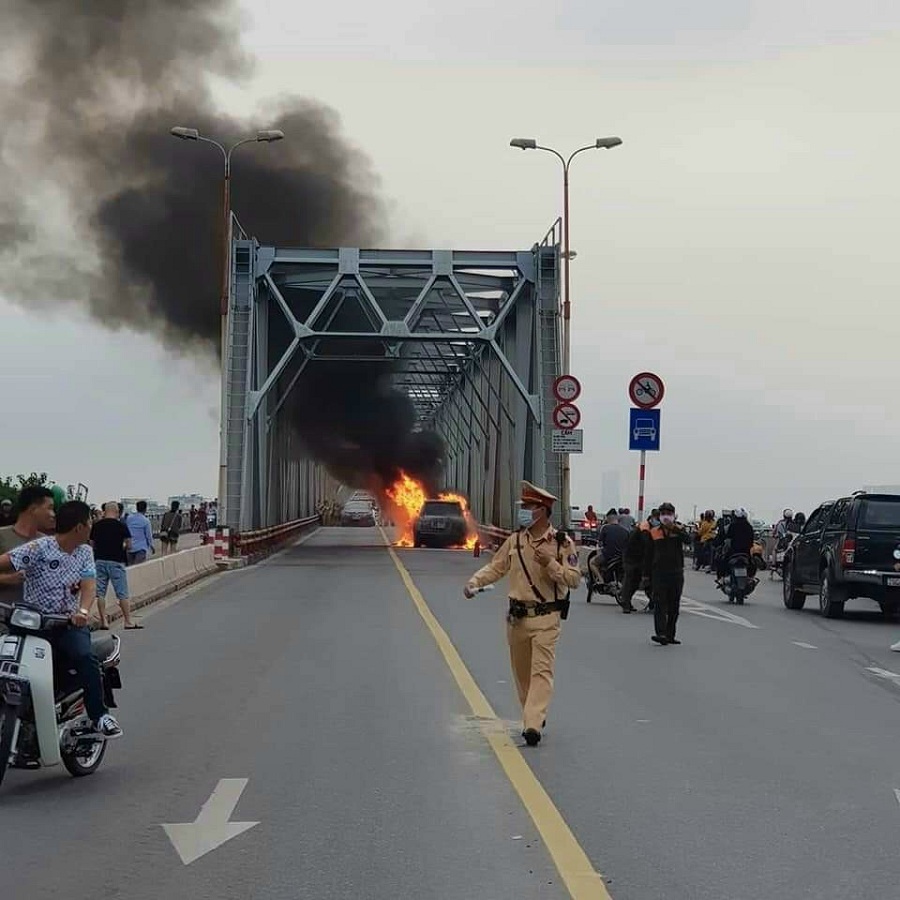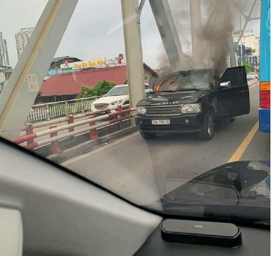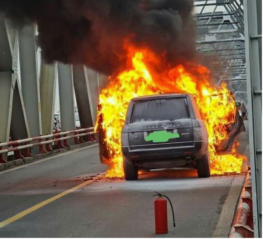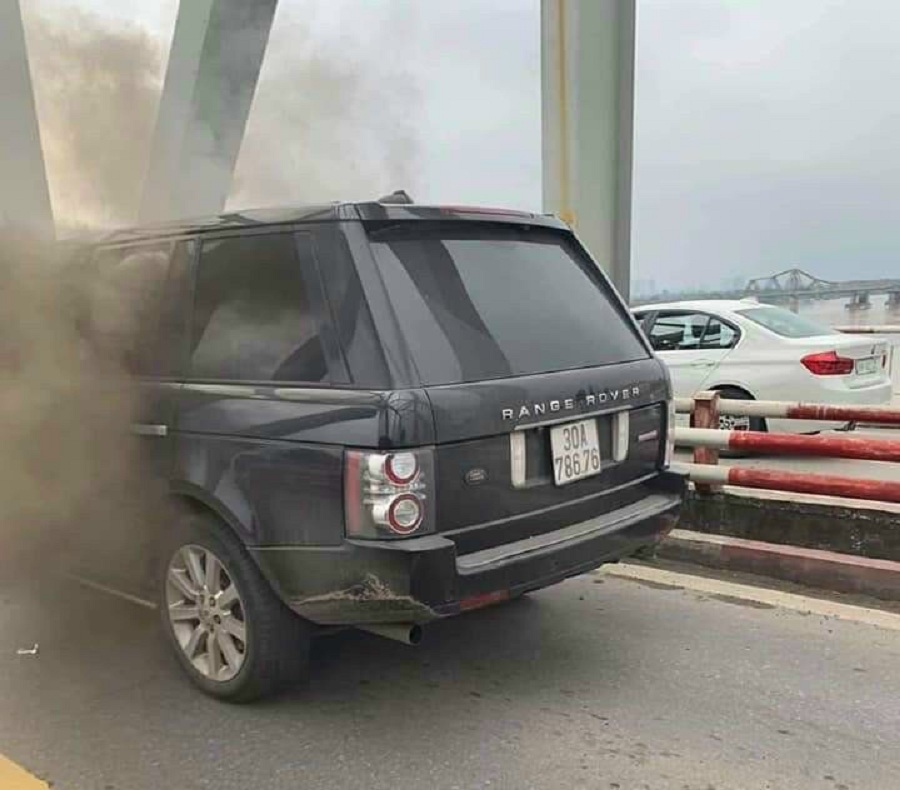 Hình ảnh chiếc Range Rover bị cháy trên cầu Long Biên