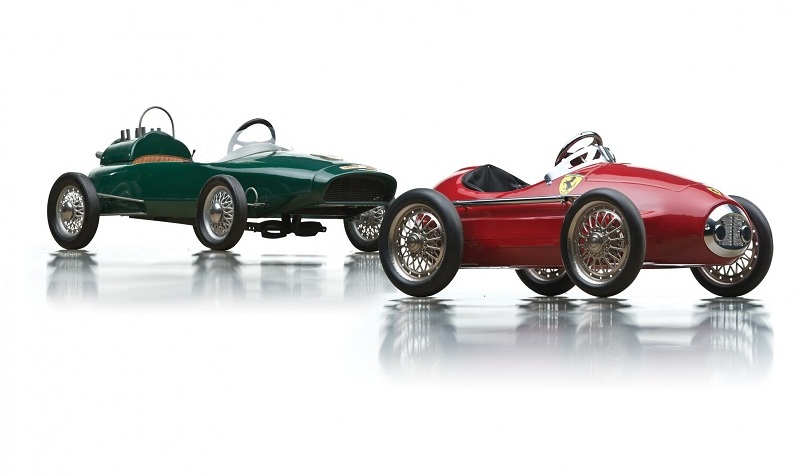 Cũng được cung cấp tại cuộc đấu giá RM Sotheby trong tháng 6 là những chiếc xe có bàn đạp đơn giản, một chiếc mang nhãn hiệu Ferrari và một xe đua Lotus Formula One 1960. Chiếc xe Lotus Formula One được làm từ nhựa cứng, với đề can "Lotus Powered by Ford" và nội thất da, nhưng không có bảng điều khiển hay đồng hồ đo.