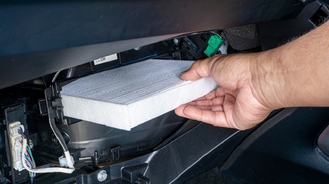 Mở hộc để đồ: Kỹ thuật viên mở hộc để đồ phía bên ghế phụ, nhấn vào lẫy ở hai bên và từ từ nhấc hộc để đồ ra ngoài. Sẽ thấy nắp hộp lọc gió điều hò...
