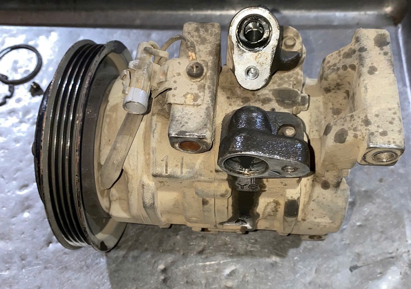 Lốc điều hòa xe Toyota Vios bị hỏng (dầu lạnh màu đen)