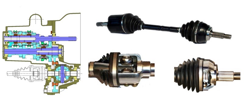 Đây là thiết kế điển hình cho các loại xe dẫn động cầu trước. Cơ cấu vi sai tích hợp bên trong hộp số, các bánh răng của cơ cấu vi sai là bánh răng thường (không phải bánh răng nghiêng, côn xoắn) nhưng chức năng của cơ cấu vi sai không thay đổi. Do bánh trước không chỉ là một phần của hệ thống treo mà còn là một phần của hệ thống lái, do vậy trục láp không chỉ được thiết kế cho phép bánh xe chuyển động lên xuống mà còn cho phép bánh xe rẽ trái hoặc phải. Khi kiểm tra cần kiểm tra chụp cao su che các khớp nối trên trục láp, nếu chụp bị thủng, mỡ bôi trơn bị rơi ra ngoài gây mòn.