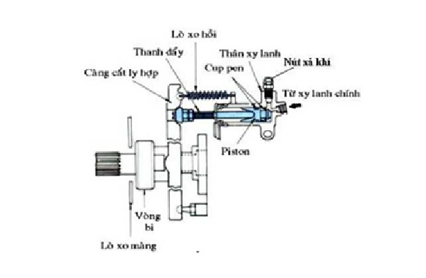 + Loại thủy lực gồm có: bàn đạp, xy lanh chính, xy lanh con, càng cắt, vòng bi cắt ly hợp.