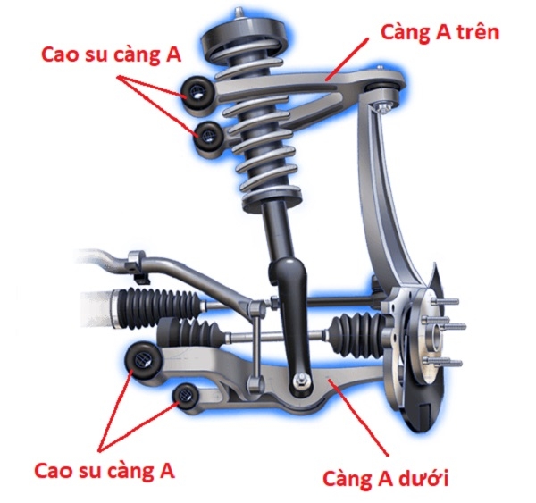 Cao su càng A cũng có tác dụng như vậy nó liên kết càng A với các bộ phận khác của xe giúp xe không bị rung, kêu ...