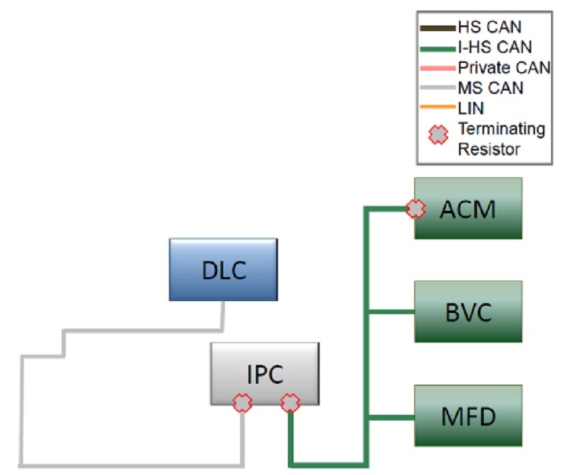 Tất cả các hộp trên đều đảm nhận những chức năng quan trọng và khẩn cấp nên chính vì vậy được liên kết với nhau thông qua đường truyền HS CAN. Đường truyền HS CAN cũng được kết nối với cổng kết nối DLC bằng dây dẫn riêng biệt. Điều này cho phép truy cập vào HS CAN bằng cách sử dụng IDS.