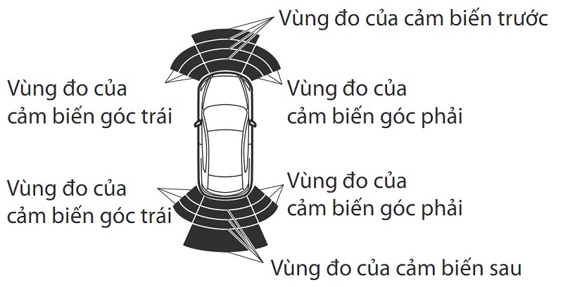 Các cảm biến phát hiện vật cản trong phạm vi sau đây: