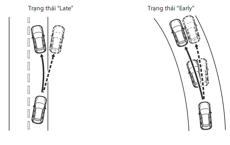 Khi được thiết lập ở trạng thái “Late”, hệ thống sẽ hỗ trợ điều chỉnh vô lăng khi xe có xu hướng bị lệch khỏi làn đường.