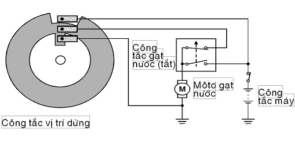 Sơ đồ mạch điện khi công tắc gạt nước ở vị trí OFF