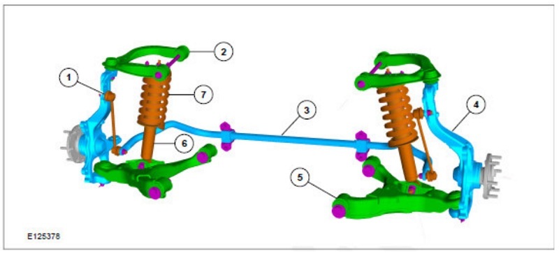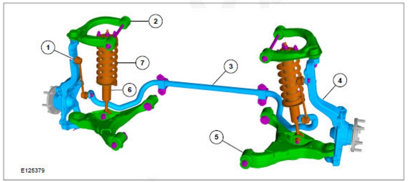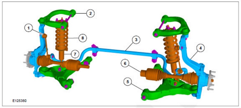 Hệ thống treo trước là loại tay đòn kép với lò xo xoắn lắp trên giảm xóc.
