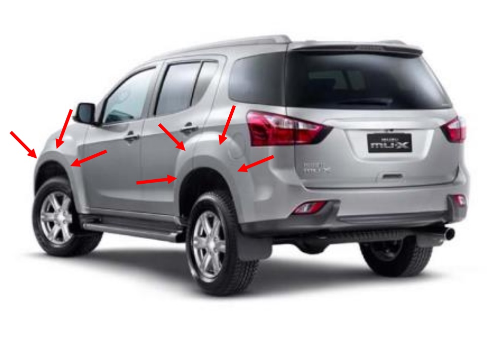 Vè xe bằng thép với thiết kế thể thao, mạnh mẽ; khoảng cách giữa bánh xe và vè xe lớn tạo cho mu-X vẻ ngoài ấn tượng.