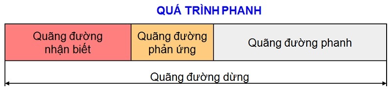 Thời gian/Quãng đường phanh: là thời gian/quãng đường xe đi được kể trừ lúc phanh có hiệu lực cho đến khi xe dừng hẳn..