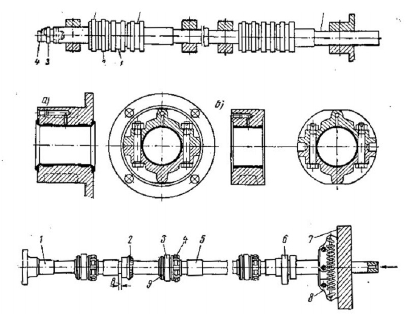 điều chỉnh khe hổ dọc trục; 7. Vành tựa trên trục cam; 8. Ô đố trục cam; 9. Nút hãm; 10.