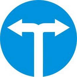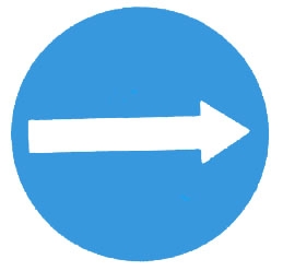 c) Biển có hiệu lực bắt buộc các loại xe phải đi vòng chướng ngại vật theo hướng mũi tên chỉ.