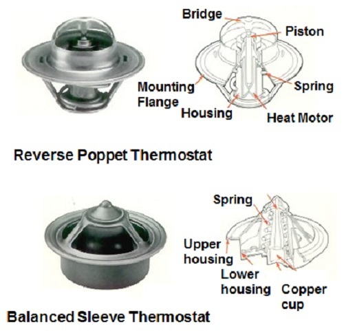 Van hằng nhiệt điều khiển nhiệt độ nước làm mát bằng cách điều khiển dòng nước đi qua két nước. Van hằng nhiệt được dẫn động bằng một mô tơ nhiệt, áp suất dương và nhạy cảm với nhiệt độ. Mô tơ nhiệt được chế tạo từ một hỗn hợp đặc biệt giữa sáp và bột sắt và được trộn thành viên liền chứa trong một cốc bằng đồng. Bên trên cốc đồng có một piston nằm bên trong một chụp bằng cao su. Khi nhiệt độ tăng, làm cho mô tơ nhiệt dãn nở đẩy piston lên trên và mở van. Mô tơ nhiệt cảm biến sự thay đổi nhiệt độ để thay đổi vị trí mở van do đó điều khiển dòng nước làm mát qua van.