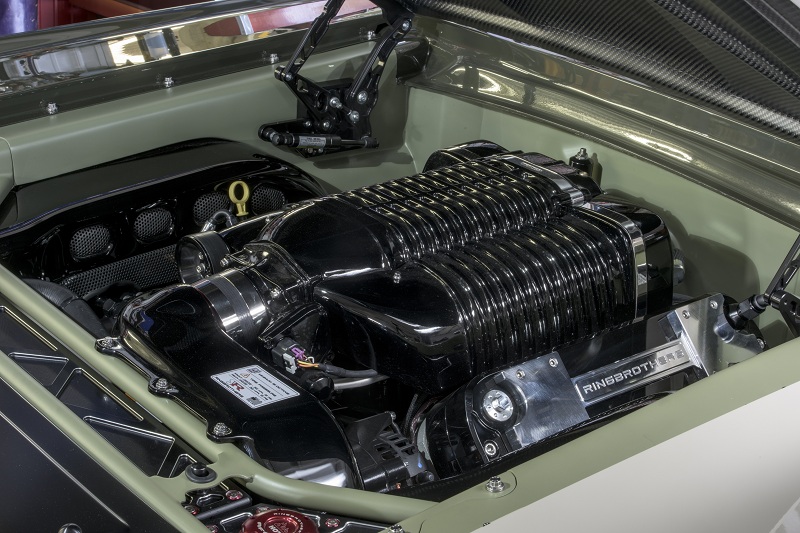 Ngoài kiểu dáng dành cho một bộ phim Bond, Ringbrothers cũng lắp động cơ cực khủng để tăng thêm phần phấn khích. Nâng nắp ca-pô lên, chúng ta sẽ tìm thấy một động cơ Wegner Motorsports V8, với đầu xi lanh đã được điều chỉnh, trục cam và trục khuỷu dành cho xe đua, cộng với một động cơ 2,9 lít Whipple siêu tăng áp. Con số công suất là ấn tượng nhất, với 959 mã lực và mô-men xoắn 858 lb-ft.