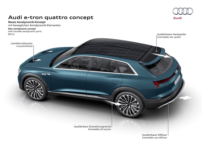 Hãng xe sang Đức cho biết mẫu crossover mới này sẽ nằm giữa phân khúc Q5 và Q7, sử dụng bộ pin 95 KWh, nguồn năng lượng tích lũy đủ cho xe chạy hơn 500 km sau mỗi lần sạc. Xe có công suất 435 mã lực và mô-men xoắn 590 lb-ft, truyền động 4 bánh.
