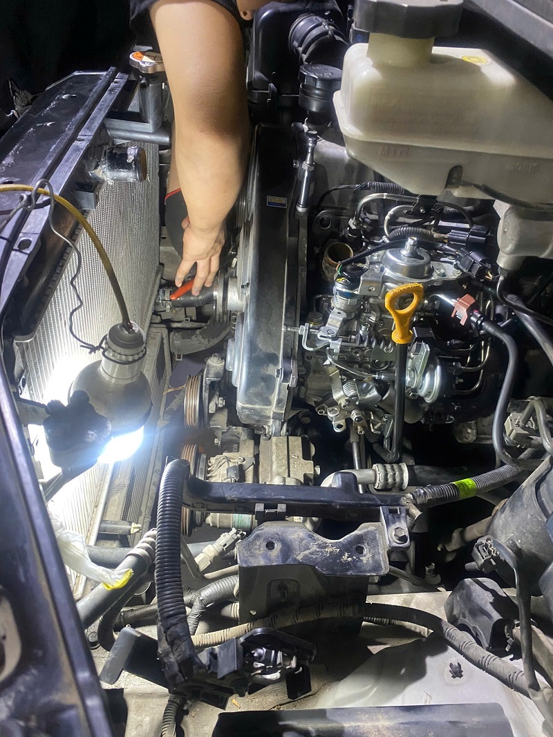 - Tháo quạt gió, các dây curoa và các buly liên quan